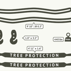 The 40 mm wide tree strap is sturdy, safe, and easy to use—plus it also protects the tree bark by preventing damage from hanging and swinging.