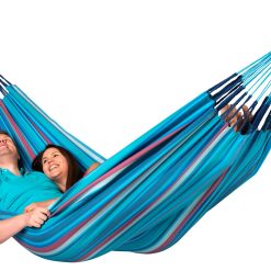 - Double size hammock for 1-2 people – 355 lb weight capacity. LA SIESTA’s multi-cord design guarantees optimal weight distribution for a feeling of weightlessness & ultimate comfort